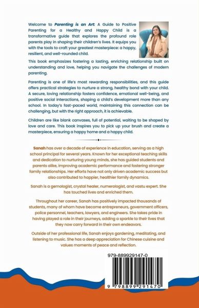 Welcome to Parenting is an Art: A Guide to Positive Parenting for a Healthy and Happy Child is a transformative guide that explores the profound role parents play in shaping their children's lives. It equips you with the tools to craft your greatest masterpiece: a happy, resilient, and well-rounded child. This book emphasizes fostering a lasting, enriching relationship built on understanding and love, helping you navigate the challenges of modern parenting. Parenting is one of life's most rewarding responsibilities, and this guide offers practical strategies to nurture a strong, healthy bond with your child. A secure, loving relationship fosters confidence, emotional well-being, and positive social interactions, shaping a child's development more than any school. In today's fast-paced world, maintaining this connection can be challenging, but with the right approach, it is achievable. Children are like blank canvases, full of potential, waiting to be shaped by love and care. This book inspires you to pick up your brush and create a masterpiece, ensuring a happy home and a happy child.