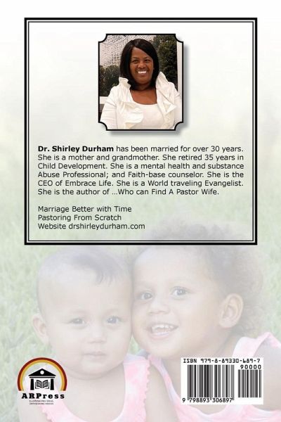 Dr. Shirley Durham has been married for over 30 years. WORTH IT She is a mother and grandmother. She retired 35 years in Child Development. She is a mental health and substance Abuse Professional; and Faith-base counselor. She is the CEO of Embrace Life. She is a World traveling Evangelist. She is the author of ...Who can Find A Pastor Wife. Marriage Better with Time Pastoring From Scratch Website drshirleydurham.com