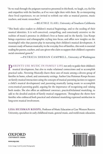Parents use music in family life to accomplish practical tasks, make relational connections, and guide their children's musical development. Parenting Musically portrays the musicking of eight diverse Cleveland-area families in home, school, and community settings. Themes from interviews focused on the families' hopes and dreams for their children musically, as well as the families' perceptions of media messages regarding parents and music, serve to deepen the documentation of how families use and perceive music in their daily lives. Family musical interactions are analyzed using the concepts of musical parenting (actions to support a child's musical development) and parenting musically (using music to accomplish extra-musical parenting goals), arguing the importance of recognizing and valuing both modes. An additional construct, practical/relational musicking, adds to the detailed analysis of family musical engagement. Practical musicking refers to musicking for a practical purpose, such as learning a scale or passing the time in a car; relational musicking is musicking that deepens relationships with self, siblings, parents, or community members, such as a grandmother singing to her grandchildren via Facetime as a way to feel connected. Families who embraced both practical and relational musicking expressed satisfaction in long-term musical involvement. Weaving together themes of conscious and intuitive parenting, the rewards and struggles of musical practice, and the role of mutuality in community musicking, the discussion draws on research in music education, psychology, family studies, and sociology. This book serves to highlight the multi-faceted nature of families' engagement in music; the author urges music education practitioners and administrators to consider this diversity when approaching curricular decisions. Written in a style accessible to laypersons, this book will interest a wide range of music educators as well as families, community members, and scholars and practitioners in family studies, psychology, and sociology.