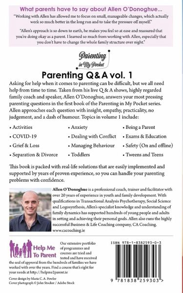 Asking for help when it comes to parenting can be difficult, but we all need help from time to time. Taken from his live Q & A shows, highly regarded family coach and speaker, Allen O'Donoghue, answers your most pressing parenting questions in the first book of the Parenting in My Pocket series. Allen approaches each question with insight, empathy, practicality, no judgement, and a dash of humour. This book is packed with real-life solutions that are easily implemented and supported by years of proven experience, so you can handle your parenting problems with confidence.