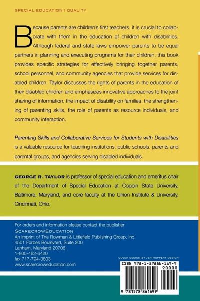 George R. Taylor is professor of special education and chairperson emeritus of the Department of Special Education at Coppin State College and CORE Faculty, The Union Institute and University, Cincinnati, Ohio. Dr. Taylor has made significant contributions to the professional literature in the area of Special Education through research and publication. Additionally, he has served as a consultant, on the local level, to parental groups involved with disabled individuals.