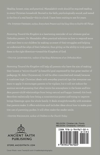 The Orthodox Christian tradition is filled with wisdom and guidance about the biblical path of salvation. Yet this guidance remains largely inaccessible to parents and often disconnected from the parenting challenges we face in our homes. Parenting Toward the Kingdom will help you make the connections between the spiritual life as we understand it in the Orthodox Church and the ongoing challenges of raising children. It takes the best child development research and connects it with the timeless truths of our Christian faith to offer you real strategies for navigating the challenges of daily life.