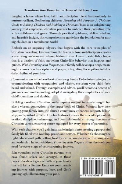 Transform Your Home into a Haven of Faith and Love Imagine a home where love, faith, and discipline blend harmoniously to nurture resilient, God-loving children. Parenting with Purpose: A Christian Guide to Raising Children and Building a Christian Home is an enlightening journey that empowers Christian parents to embrace their parenting role with confidence and grace. Through practical guidance, biblical wisdom, and heartfelt insight, this comprehensive guide lays the foundation for raising children in a tumultuous world. Embark on an inspiring odyssey that begins with the core principles of Christian parenting. Discover how the fusion of love and discipline creates a nurturing environment where children thrive. Learn to establish a home that is a bastion of faith, modeling Christ-like behavior that inspires and guides. With Parenting with Purpose, your family will develop a deep, meaningful connection to scripture and prayer, integrating these pillars into the daily rhythm of your lives. Communication is the heartbeat of a strong family. Delve into strategies for communicating with compassion and clarity, ensuring your child feels heard and valued. Through examples and advice, you'll become a beacon of guidance and understanding, adept at navigating the complexities of your child's questions and doubts. Building a resilient Christian family requires not just internal strength, but also a vibrant connection to the larger body of Christ. Witness how integrating your family into the church community enhances support, fellowship, and spiritual growth. This book also addresses the crucial topics of education, discipline, technology, and peer relationships through the lens of Christian values, ensuring you're equipped for every aspect of parenting. With each chapter, you'll gain invaluable insights into creating a purposeful family life filled with worship, praise, and service. Whether it's choosing the right educational path, setting healthy media boundaries, or fostering servant leadership in your children, Parenting with Purpose offers the tools you need for every stage of your parenting journey. Join countless other Christian parents who have found solace and strength in these pages. Create a legacy of faith in your family that will last a lifetime. Embrace your parenting journey with purpose, love, and God's guiding light illuminating your path.