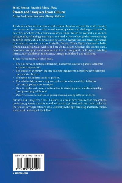 This book explores diverse parent-child relationships from around the world, drawing on connections between culture and parenting values and challenges. It identifies parenting practices within various countries' unique historical, political, and cultural backgrounds, reframing parenting as a cultural process whose goals are to encourage culturally-specific child behaviors and outcomes. Chapters focus on parenting research in a range of countries, such as Australia, Bolivia, China, Egypt, Guatemala, India, Rwanda, Namibia, Saudi Arabia, and the United States. Chapters also discuss social, emotional, and physical developmental topics throughout the lifespan, including infancy, early childhood, adolescence, emerging adulthood, and adulthood.