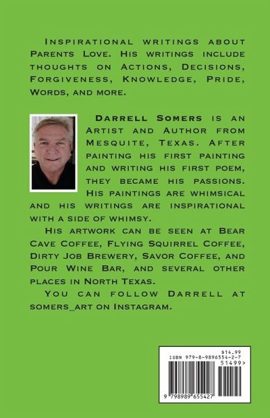 This book of contemporary and inspirational writings shares thoughts on a Parents Love. It includes the authors whimsical and thought-provoking insight into every day family relationships and activities including: Actions, Decisions, Forgiveness, Knowledge, Pride, Words, and more. This is the second book of poems by author Darrell Somers. Be sure to check out his My Walk book also.