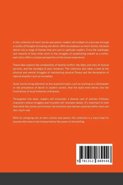 In this collection of short stories and poems, readers will embark on a journey through a variety of thought-provoking narratives. With an emphasis on short stories, the book delves into a range of themes that are sure to captivate readers. From the challenges and rewards of blue-collar work to the struggles of establishing oneself as a writer, each story offers a unique perspective on the human experience. These tales explore the complexities of familial conflict, the highs and lows of musical pursuits, and the nostalgia of past romances. The collection also takes a look at the physical and mental struggles of maintaining physical fitness and the devastation of natural disasters such as tornadoes. Some stories bring attention to less-explored topics, such as working as a dishwasher or the prevalence of deceit in modern society. And the book even delves into the frustrations of local fireworks ordinances. Throughout this book, readers will encounter a diverse cast of entirely fictitious characters whose struggles and triumphs will resonate deeply. It's important to note that while the stories are fictional, the emotions and themes explored within them are very much real. With its intriguing mix of short stories and poems, this collection is a must-read for anyone who loves to be transported by the power of storytelling.