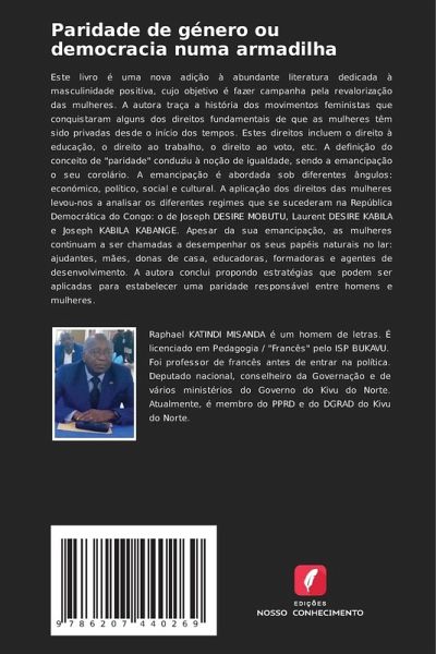 Este livro é uma nova adição à abundante literatura dedicada à masculinidade positiva, cujo objetivo é fazer campanha pela revalorização das mulheres. A autora traça a história dos movimentos feministas que conquistaram alguns dos direitos fundamentais de que as mulheres têm sido privadas desde o início dos tempos. Estes direitos incluem o direito à educação, o direito ao trabalho, o direito ao voto, etc. A definição do conceito de "paridade" conduziu à noção de igualdade, sendo a emancipação o seu corolário. A emancipação é abordada sob diferentes ângulos: económico, político, social e cultural. A aplicação dos direitos das mulheres levou-nos a analisar os diferentes regimes que se sucederam na República Democrática do Congo: o de Joseph DESIRE MOBUTU, Laurent DESIRE KABILA e Joseph KABILA KABANGE. Apesar da sua emancipação, as mulheres continuam a ser chamadas a desempenhar os seus papéis naturais no lar: ajudantes, mães, donas de casa, educadoras, formadoras e agentes de desenvolvimento. A autora conclui propondo estratégias que podem ser aplicadas para estabelecer uma paridade responsável entre homens e mulheres.