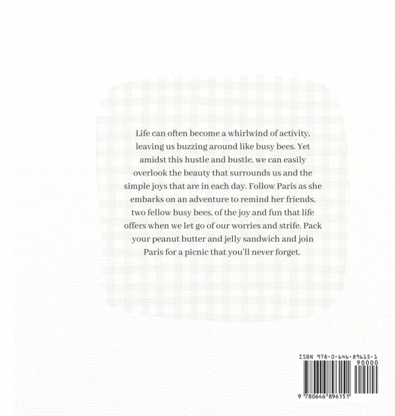 Life can often become a whirlwind of activity, leaving us buzzing around like busy bees. Yet amidst this hustle and bustle, we can easily overlook the beauty that surrounds us and the simple joys that are in each day. Follow Paris as she embarks on an adventure to remind her friends, two fellow busy bees, of the joy and fun that life offers when we let go of our worries and strife. Pack your peanut butter and jelly sandwich and join Paris for a picnic that you'll never forget.