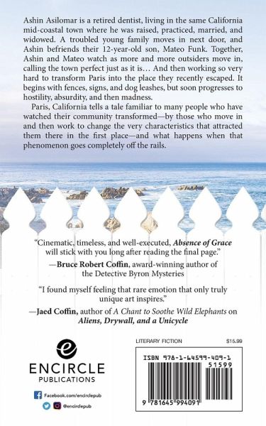 Ashin Asilomar is a retired dentist, living in the same California mid-coastal town where he was raised, practiced, married, and widowed. A troubled young family moves in next door, and Ashin befriends their 12-year-old son, Mateo Funk. Together, Ashin and Mateo watch as more and more outsiders move in, calling the town perfect just as it is... And then working so very hard to transform Paris into the place they recently escaped. It begins with fences, signs, and dog leashes, but soon progresses to hostility, absurdity, and then madness. Paris, California tells a tale familiar to many people who have watched their community transformed-by those who move in and then work to change the very characteristics that attracted them there in the first place-and what happens when that phenomenon goes completely off the rails.