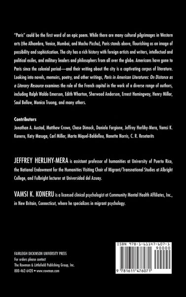 This collection brings together new perspectives on the novels, memoirs, poetry, and journalism concerning Paris written by Americans. By examining the implications of foreignness as a creative device, this volume offer an innovative approach to understanding the role of the French capital in American Literatures, one that would be compelling for the literary scholar and the avid reader.
