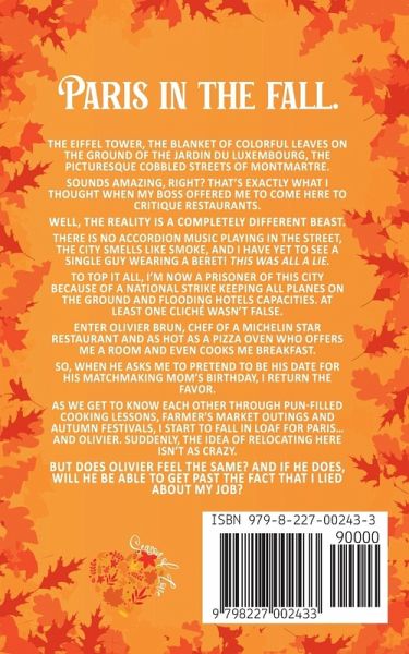 In a city known for its romantic clichés, can reality surpass the fantasy? Paris in the fall. The Eiffel tower, the blanket of colorful leaves on the ground of the Jardin du Luxembourg, the picturesque cobbled streets of Montmartre. Sounds amazing, right? That's exactly what I thought when my boss offered me to come here to critique restaurants. Well, the reality is a completely different beast. There is no accordion music playing in the street, the city smells like smoke, and I have yet to see a single guy wearing a beret! This was all a lie. To top it all, I'm now a prisoner of this city because of a national strike keeping all planes on the ground and flooding hotels capacities. At least one cliché wasn't false. Enter Olivier Brun, chef of a Michelin star restaurant and as hot as a pizza oven who offers me a room and even cooks me breakfast. So, when he asks me to pretend to be his date for his matchmaking mom's birthday, I return the favor. As we get to know each other through pun-filled cooking lessons, farmer's market outings and autumn festivals, I start to fall in loaf with Paris... and Olivier. Suddenly, the idea of relocating here isn't as crazy. But does Olivier feel the same? And if he does, will he be able to get past the fact that I lied about my job? Paris, Pumpkins & Puns is a closed-door romcom with cozy autumn vibes, plenty of cooking puns and an irresistible Frenchman. This is the Season of Love version special edition cover with chapter titles and an added bonus epilogue, previously available to newsletter subscribers.