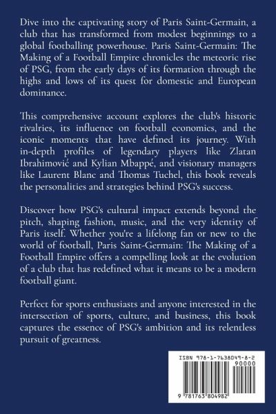 Dive into the captivating story of Paris Saint-Germain, a club that has transformed from modest beginnings to a global footballing powerhouse. Paris Saint-Germain: The Making of a Football Empire chronicles the meteoric rise of PSG, from the early days of its formation through the highs and lows of its quest for domestic and European dominance. This comprehensive account explores the club's historic rivalries, its influence on football economics, and the iconic moments that have defined its journey. With in-depth profiles of legendary players like Zlatan Ibrahimovi¿ and Kylian Mbappé, and visionary managers like Laurent Blanc and Thomas Tuchel, this book reveals the personalities and strategies behind PSG's success. Discover how PSG's cultural impact extends beyond the pitch, shaping fashion, music, and the very identity of Paris itself. Whether you're a lifelong fan or new to the world of football, Paris Saint-Germain: The Making of a Football Empire offers a compelling look at the evolution of a club that has redefined what it means to be a modern football giant. Perfect for sports enthusiasts and anyone interested in the intersection of sports, culture, and business, this book captures the essence of PSG's ambition and its relentless pursuit of greatness.