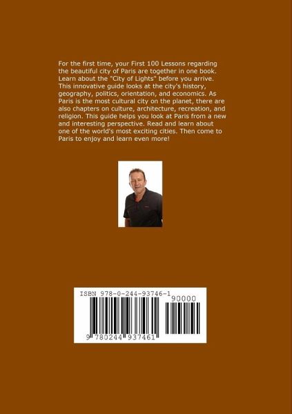 For the first time, your First 100 Lessons regarding the beautiful city of Paris are in one book. Learn about the "City of Lights" before you arrive. This innovative guide looks at the city's history, geography, politics, orientation, and economics. As Paris is the most cultural city on the planet, there are also chapters on culture, architecture, recreation, and religion. This travel guide helps you look at Paris from a new and interesting perspective. Learn about one of the world's most exciting cities. Then come to Paris to enjoy and learn even more!