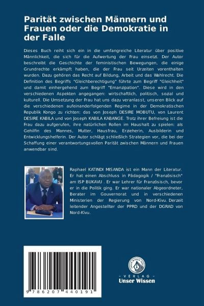 Dieses Buch reiht sich ein in die umfangreiche Literatur über positive Männlichkeit, die sich für die Aufwertung der Frau einsetzt. Der Autor beschreibt die Geschichte der feministischen Bewegungen, die einige Grundrechte erkämpft haben, die der Frau seit Urzeiten vorenthalten wurden. Dazu gehören das Recht auf Bildung, Arbeit und das Wahlrecht. Die Definition des Begriffs "Gleichberechtigung" führte zum Begriff "Gleichheit" und damit einhergehend zum Begriff "Emanzipation". Diese wird in den verschiedenen Aspekten angegangen: wirtschaftlich, politisch, sozial und kulturell. Die Umsetzung der Frau hat uns dazu veranlasst, unseren Blick auf die verschiedenen aufeinanderfolgenden Regime in der Demokratischen Republik Kongo zu richten: das von Joseph DESIRE MOBUTU, von Laurent DESIRE KABILA und von Joseph KABILA KABANGE. Trotz ihrer Befreiung ist die Frau dazu aufgerufen, ihre natürlichen Rollen im Haushalt zu spielen: als Gehilfin des Mannes, Mutter, Hausfrau, Erzieherin, Ausbilderin und Entwicklungshelferin. Der Autor schlägt schließlich Strategien vor, die bei der Schaffung einer verantwortungsvollen Parität zwischen Männern und Frauen anwendbar sind.