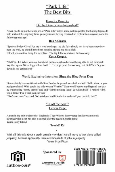 "Park Life The Best Bits" is a book for football fans who have a sense of humour. RTB Ebbw Vale are a Welsh football club so far down the football pyramid they are on the Sphinx! The book has dozens of fun packed articles and anecdotes that poke fun at the game in general as well as bringing to life a host of fictional characters with a view on football and life in general. How many football programmes have ever claimed to have an interview with Shep the Blue Peter dog?