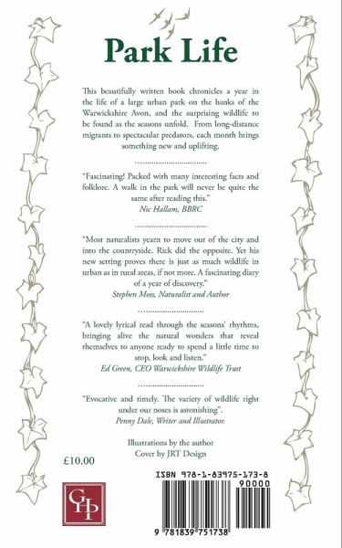 This beautifully written book chronicles a year in the life of a large urban park on the banks of the Warwickshire Avon, and the surprising wildlife to be found as the seasons unfold. There are exiting discoveries, little-known facts, tips on identification, and the legends associated with many of our wild creatures. From long-distance migrants to spectacular predators, each month brings something new and uplifting. "A fascinating diary of a year of discovery". (Stephen Moss, Naturalist and Author). "A walk in the park will never be quite the same after reading this". (Nic Hallam, BBRC).