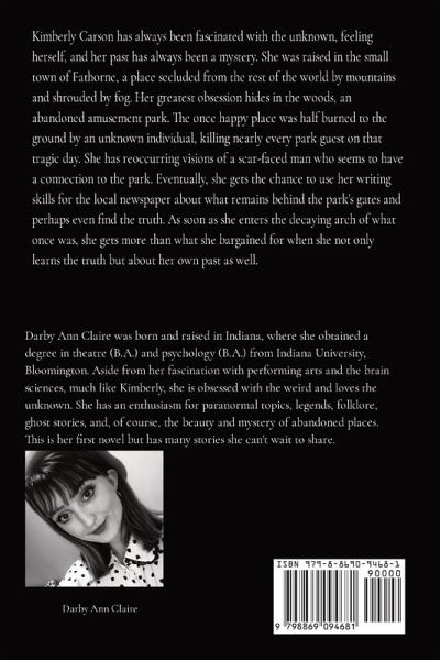 Kimberly Carson has always been fascinated with the unknown, feeling herself, and her past has always been a mystery. She was raised in the small town of Fathorne, a place secluded from the rest of the world by mountains and shrouded by fog. Her greatest obsession hides in the woods, an abandoned amusement park. The once happy place was half burned to the ground by an unknown individual, killing nearly every park guest on that tragic day. She has reoccurring visions of a scar-faced man who seems to have a connection to the park. Eventually, she gets the chance to use her writing skills for the local newspaper about what remains behind the park's gates and perhaps even find the truth. As soon as she enters the decaying arch of what once was, she gets more than what she bargained for when she not only learns the truth but about her own past as well.