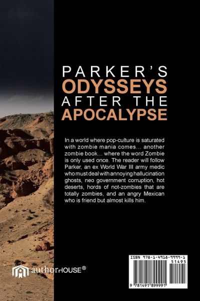 In a world where pop-culture is saturated with zombie mania comes... another zombie book... where the word Zombie is only used once. The reader will follow Parker, an ex World War III army medic who must deal with annoying hallucination ghosts, neo government corruption, hot deserts, hords of not-zombies that are totally zombies, and an angry Mexican who is friend but almost kills him.