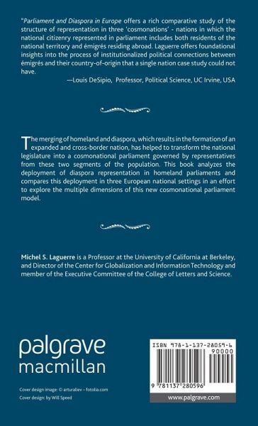 "Parliament and Diaspora in Europe offers a rich comparative study of the structure of representation in the three 'cosmonations' - nations in which the national citizenry represented in parliament includes both residents of the national territory and emigres residing abroad. Laguerre offers foundational insights into the process of institutionalized political connections between emigres and their country-of-origin that a single nation case study could not have." - Louis DeSipio, Professor, Political Science, University of California Irvine