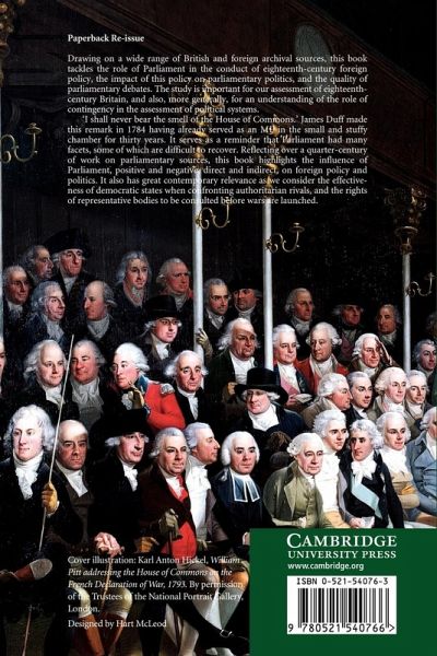 Drawing on a wide range of British and foreign archival sources, this book tackles the role of Parliament in the conduct of eighteenth-century foreign policy, the impact of this policy on parliamentary politics, and the quality of parliamentary debates. It is also an important study for our assessment of eighteenth-century Britain, and also, more generally, for an understanding of the role of contingency in the assessment of political systems. Reflecting over a quarter-century of work on parliamentary sources, the book highlights the influence of Parliament, positive and negative, direct and indirect, on foreign policy and politics. It also has great contemporary relevance as we consider the effectiveness of democratic states when confronting authoritarian rivals, and the rights of representative bodies to be consulted before wars are launched.