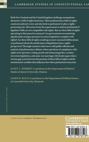 Both New Zealand and the United Kingdom challenge assumptions about how a bill of rights functions. Their parliamentary bills of rights constrain judicial review and also look to parliament to play a rights-protecting role. This arises from the requirement to inform parliament if legislative bills are not compatible with rights. But are these bills of rights operating in this proactive manner? Are governments encountering significantly stronger pressures to ensure legislation complies with rights? Are these bills of rights resulting in more reasoned deliberations in parliament about the justification of legislation from a rights perspective? Through extensive interviews with public officials and analysis of parliamentary debates where questions of compliance with rights arise (prisoner voting, parole and sentencing policy, counter-terrorism legislation, and same-sex marriage), this book argues that a serious gap exists between the promise of these bills of rights and the institutional variables that influence how these parliaments function.