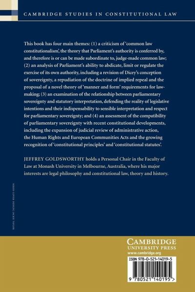 This examination of the ultimate foundations of Britain's customary constitution explores the past, present and possible future of parliamentary sovereignty, how recent constitutional developments have affected it, the relationship between Parliament, the courts and the protection of human rights, and how Parliament can effectively control its own sovereign authority.