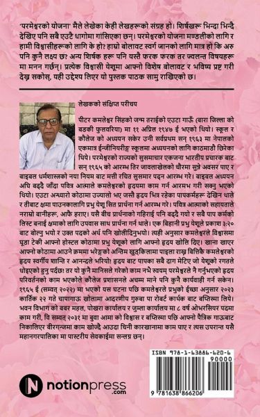 'Parmeshwar ko Yojana', the 'Purposes of God' if translated in English, is a collection of different articles written and published earlier. The writings by their titles look different but in reality they all contain a single thread of thought: God's calling for every believer and how He plans for us to reach the destiny. It is the hope and personal desire of the author that every reader may experience the warmth of God's presence as he reads and meditates on different themes in the writings.