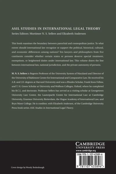This book examines the boundary between parochial and cosmopolitan justice. Parochialism and cosmopolitanism are two faces of international law, which recognizes our common humanity by protecting us in our differences. Essays in this book ask to what extent law should recognize or support the political, historical, cultural and economic differences among nations. Nine lawyers and philosophers from five continents consider whether certain states or persons deserve special treatment, exemptions or heightened duties under international law. Contributors draw the line between international law, national jurisdiction and the private autonomy of persons.