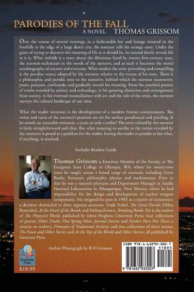 Over the course of several evenings, in a fashionable bar and lounge situated in the foothills at the edge of a large desert city, the narrator tells his strange story. Under the guise of trying to discover the meaning of life as it should be, he instead slowly reveals life as it is. What unfolds is a story about the dilemmas faced by twenty-first-century man, the scientist-technician in the words of the narrator, and as such it becomes the moral autobiography of anyone and everyone. What renders the story provoking and compelling is the peculiar stance adopted by the narrator relative to the events of his story. There is a philosophic and parodic tone to the narrative, behind which the narrator maneuvers, poses, postures, confounds, and gradually reveals his meaning. From his youthful pursuit of truths revealed by science and technology, to his growing alienation and estrangement from society, to his eventual reconciliation with art and the role of the artist, the narrator surveys the cultural landscape of our time. What the reader witnesses is the development of a modern human consciousness. The twists and turns of the narrator's position are on the surface paradoxical and puzzling. Is he merely an incurable romantic, a cynic or only a realist? The story related by the narrator is fairly straightforward and clear. But what meaning to ascribe to the events revealed by the narrative is posed as a problem for the reader, leaving the reader to ponder at last what, if anything, is resolved. Includes Readers Guide.