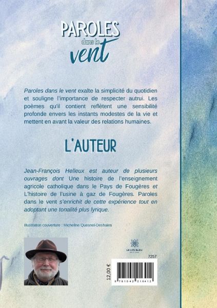 Jean-François Helleux est auteur de plusieurs ouvrages dont Une histoire de l¿enseignement agricole catholique dans le Pays de Fougères et L¿histoire de l¿usine à gaz de Fougères. Paroles dans le vent s¿enrichit de cette expérience tout en adoptant une tonalité plus lyrique.