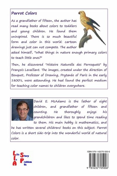 Parrot Colors is a vibrant and engaging way for preschool children to learn their colors. "As a grandfather of fifteen, I have read countless books about colors to toddlers and young children. Too often, I found them uninspired-cartoon drawings simply can't capture the richness of the world around us. I wanted something more, something that truly reflected the beauty of color in nature. That's when I discovered Histoire Naturelle des Perroquets by François Levaillant. The breathtaking illustrations, created under the direction of Bouquet, Professor of Drawing at Prytanée of Paris in the early 1800s, were unlike anything I had seen. These vivid, lifelike depictions of parrots, bursting with natural color, provided the perfect medium for teaching young children the names of colors in a way that is both educational and visually stunning." With Parrot Colors, children will embark on a journey through the brilliant hues of nature, making learning a joyful and immersive experience.