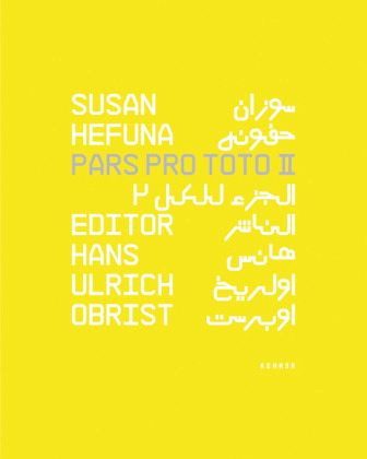 Wie schon der 2008 mit großem Erfolg publizierte erste Band, entstand auch Pars Pro Toto II in engem Dialog der deutsch-ägyptischen Künstlerin Susan Hefuna mit dem Herausgeber Hans Ulrich Obrist.Im Zentrum des reich ausgestatteten Buchs steht eine neue Werkgruppe Hefunas, die interkulturelle Codes und Mythen aus der deutschen und ägyptischen Kultur in neue Zusammenhänge bringt. Das Buch präsentiert u. a. aktuelle Zeichnungs-Serien und die holzgedrechselten und bemalten Mashrabiyas, die 'Meditation-Screens' mit ihren erst auf den zweiten Blick erkennbaren eingeschriebenen englischen oder arabischen Worten. Pars Pro Toto II enthält Interviews von Hans Ulrich Obrist mit Susan Hefuna und mit dem ägyptischen Schriftsteller Gamal Al Ghitani sowie ein Essay des englischen Mathematikers und Autors Marcus du Sautoy.Hefunas Werke wurden international ausgestellt, so z. B. im Louvre, Paris; Townhouse Gallery, Cairo; House of World Cultures, Berlin; The Third Line Gallery, Dubai; Sharjah Biennale; Albion Gallery London und New York; New Museum, New York, Sevilla Biennale. Sie ist für den Jameel Prize 2009 des Londoner Victoria & Albert Museum nominiert.