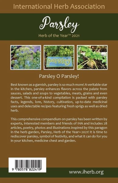 Best known as a garnish, parsley is so much more! A veritable star in the kitchen, parsley enhances flavors across the palate from sauces, salads and soups to vegetables, meats, grains and even dessert. This one-of-a-kind compilation is packed with parsley facts, legends, lore, history, cultivation, up-to-date medicinal uses and delectable recipes featuring fresh sprigs as well as dried herb. This comprehensive compendium on parsley has been written by experts, interested members and friends of IHA and includes 28 articles, poetry, photos and illustrations inspired by this paragon in the herb garden, Parsley, Herb of the Year¿ 2021! It is time to rediscover parsley, symbol of festivity, and what it can do for you in your kitchen, medicine chest and garden.