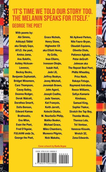 Featuring: Abi Simms, Adesayo Talabi, AFLO. the poet, Amina Jama, Anu Balofin, Ashley Hickson-Lovence, Becksy Becks, Benjamin Zephaniah, Bridget Minamore, Cara Thompson, Casey Bailey, Deanna Rodger, Derek Walcott, Dorothea Smartt, Dzifa Benson, Edward Kamau Brathwaite, Eno Mfon, Evan the Poet, Fred D'Aguiar, FULAANI onda 3s, George The Poet, Grace Nichols, Henry Stone, Highwater Ell aka Elliott Henry, Ife Grillo, Inua Ellams, Irenosen Okojie, Isaiah Hull, Jade LB, Jeffrey Boakye, Jenny Mitchell, Jeremiah Brown, John Agard, Joseph Coelho, Jude Yawson, Kat Francois, Keith Jarrett, Kelechi Okafor, M. NourbeSe Philip, Malika Booker, Michael Groce, Miles Chambers, Muneera Pilgrim, Nick Makoha, Nii Ayikwei Parkes, Nile Faure-Bryan, Olaudah Equiano, Olivette Otele, Patience Agbabi, Peter deGraft-Johnson aka The Repeat Beat Poet, Phillis Wheatley, Priss Nash, Rakaya Fetuga, Raymond Antrobus, Reece Williams, Safiya Kamaria Kinshasha, Samuel King, Sophia Thakur, Stretch the Top Boy, Thembe Mvula, Theresa Lola, Tré Ventour, Vanessa Kisuule, Wretch 32 and Zena Edwards.