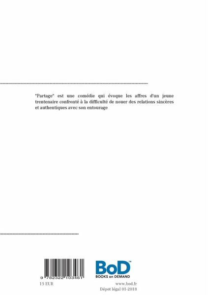 "Partage" est une comédie qui évoque les affres d'un jeune trentenaire confronté à la difficulté de nouer des relations sincères et authentiques avec son entourage