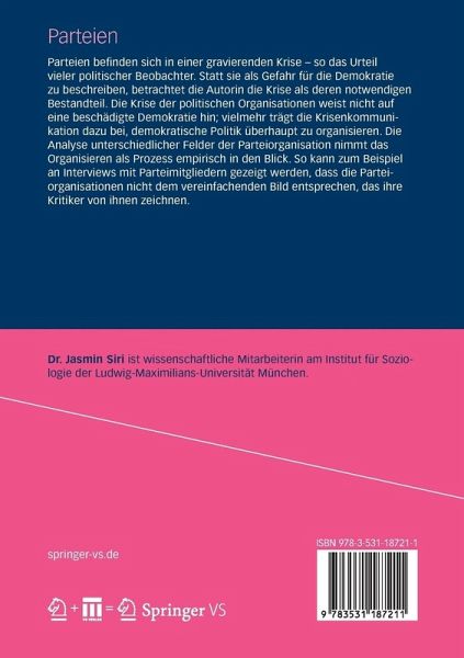 Parteien befinden sich in einer gravierenden Krise - so das Urteil vieler politischer Beobachter. Statt sie als Gefahr für die Demokratie zu beschreiben, betrachtet die Autorin die Krise als deren notwendigen Bestandteil. Die Krise der politischen Organisationen weist nicht auf eine beschädigte Demokratie hin; vielmehr trägt die Krisenkommunikation dazu bei, demokratische Politik überhaupt zu organisieren. Die Analyse unterschiedlicher Felder der Parteiorganisation nimmt das Organisieren als Prozess empirisch in den Blick. So kann zum Beispiel an Interviews mit Parteimitgliedern gezeigt werden, dass die Parteiorganisationen nicht dem vereinfachenden Bild entsprechen, das ihre Kritiker von ihnen zeichnen.
