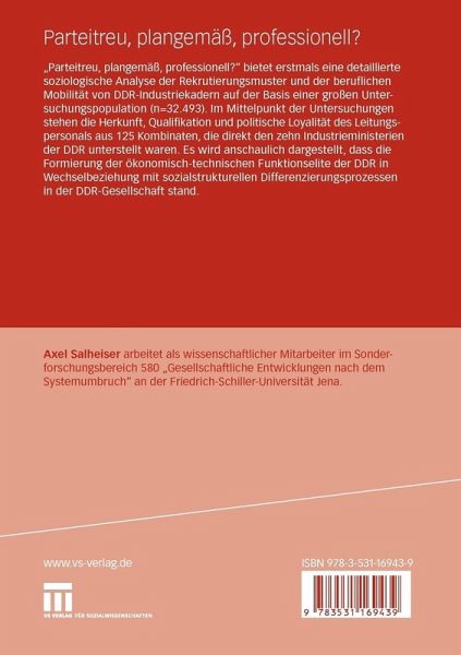 "Parteitreu, plangemäß, professionell?" bietet erstmals eine detaillierte soziologische Analyse der Rekrutierungsmuster und der beruflichen Mobilität von DDR-Industriekadern auf der Basis einer großen Untersuchungspopulation (n=32.493). Im Mittelpunkt der Untersuchungen stehen die Herkunft, Qualifikation und politische Loyalität des Leitungspersonals aus 125 Kombinaten, die direkt den zehn Industrieministerien der DDR unterstellt waren. Es wird anschaulich dargestellt, dass die Formierung der ökonomisch-technischen Funktionselite der DDR in Wechselbeziehung mit sozialstrukturellen Differenzierungsprozessen in der DDR-Gesellschaft stand.