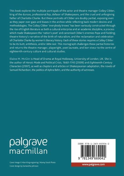 This book explores the multiple portrayals of the actor and theatre manager Colley Cibber, king of the dunces, professional fop, defacer of Shakespeare and the cruel and unforgiving father of Charlotte Charke. But these portraits of Cibber are doubly partial, exposing even as they paper over gaps and biases in the archive while reflecting back modern desires and methodologies. The Colley Cibber 'everybody knows' has been variously constructed through the rise of English literature as both a cultural enterprise and an academic discipline, a process which made Shakespeare the 'nation's poet' and canonised Cibber's enemies Pope and Fielding; theatre history's narrative of the birth of naturalism; and the reclamation and celebration of Charlotte Charke by women's literary history. Each of these stories requires a Colley Cibber to be its butt, antithesis, and/or bête noir. This monograph challenges these partial histories and returns the theatre manager, playwright, poet laureate and bon viveur to the centre of eighteenth-century culture and cultural studies.
