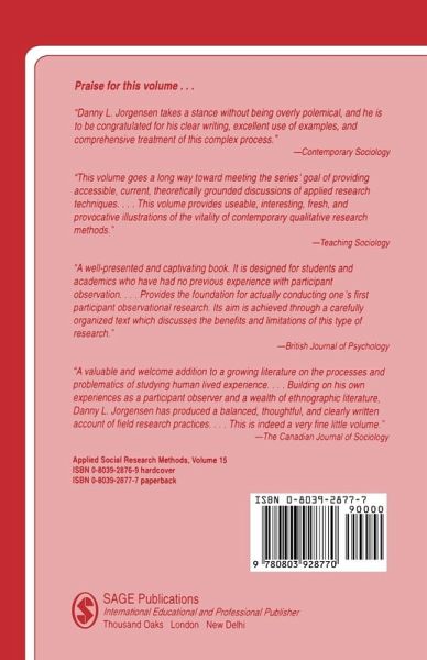 While providing an introduction to basic principles and strategies, this volume also explores the philosophy and methodology underlying the actual practice of participant observation. Taking a thoroughly practical approach to the methods of participant observation, Jorgensen illustrates these methods with both classic and current research studies. By using the materials in this book, the reader can begin conducting participant observation research on his or her own.