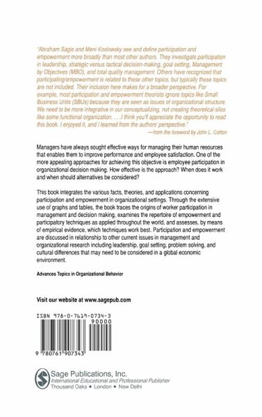 This book takes a crtitical look at employee participation in organizational decision making. It is the first book to do this by integrating into one source the various facts, theories, and applications concerning participation and empowerment in organizational settings. Through the extensive use of graphs and tables, the book traces the origins of worker participation in management and decision making, examines the repertoire of empowerment and participatory techniques as applied throughout the world, and assesses, by means of empirical evidence, which technique works best.