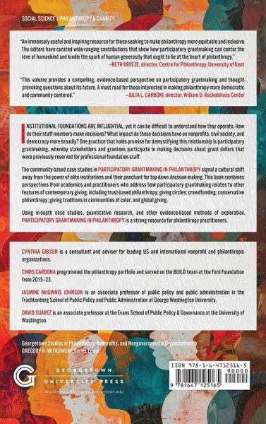 A new community-based framework assessing the impact of participatory grantmaking on philanthropy Institutional foundations are influential, yet it can be difficult to understand how they operate. How do their staff members make decisions? What impact do these decisions have on nonprofits, civil society, and democracy more broadly? One practice that holds promise for demystifying this relationship is participatory grantmaking, whereby stakeholders and grantees participate in making decisions about grant dollars that were previously reserved for professional foundation staff. The community-based case studies in Participatory Grantmaking in Philanthropy signal a cultural shift away from the power of elite institutions and their penchant for top-down decision-making. This book combines perspectives from academics and practitioners who address how participatory grantmaking relates to other features of contemporary giving, including trust-based philanthropy; giving circles; crowdfunding; conservative philanthropy; giving traditions in communities of color; and global giving. Using in-depth case studies, quantitative research, and other evidence-based methods of exploration, Participatory Grantmaking in Philanthropy will be a strong resource for philanthropy practitioners not only at the community level but also at large institutional foundations as well as megadonors seeking to integrate diversity, equity, and inclusion into their decision-making practices.