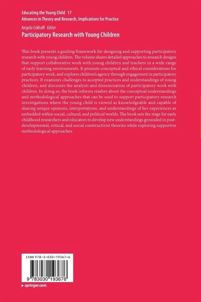 This book presents a guiding framework for designing and supporting participatory research with young children. The volume shares detailed approaches to research designs that support collaborative work with young children and teachers in a wide range of early learning environments. It presents conceptual and ethical considerations for participatory work, and explores children's agency through engagement in participatory practices. It examines challenges to accepted practices and understandings of young children, and discusses the analysis and dissemination of participatory work with children. In doing so, the book informs readers about the conceptual understandings and methodological approaches that can be used to support participatory research investigations where the young child is viewed as knowledgeable and capable of sharing unique opinions, interpretations, and understandings of her experiences as embedded within social, cultural, and political worlds. The book sets thestagefor early childhood researchers and educators to develop new understandings grounded in post-developmental, critical, and social constructivist theories while exploring supportive methodological approaches.