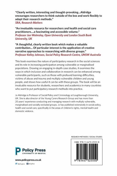 This book examines the nature of participatory research in the social sciences and its role in increasing participation among vulnerable or marginalised populations. It examines the ways in which inclusion and collaboration in research can be enhanced among vulnerable participants, and shows how useful it can be with these groups.