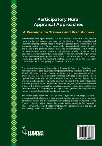 Participatory Rural Appraisal (PRA) is a developmental method that has enabled many development organizations overcome the challenge of understanding and identifying the scope of local needs in which they operate. It aims to incorporate the knowledge and opinions of rural people in identifying and evaluating their needs, and hence in the planning, management, final implementation and monitoring processes of development projects and programs. In effect, it has become a preferred tool by development agencies, especially non-governmental organizations (NGOs) and development professionals. The success of the method is, however, largely dependent on the tools and methods used as well as the organizers' commitment to the 'participatory' aspect of the practice. Participatory Rural Appraisal Approaches: A Resource for Trainers and Practitioners is a handbook that has been developed from practical field experiences drawn from over 10,000 PRA trainers scattered throughout the world and operating under different environments. The content is further enhanced with case studies and has been updated from earlier editions to include current trends in the field of participatory and community-based development planning. It is hoped that the book will promote authentic participation of communities to ensure tangible, positive and sustained changes. It is, therefore, ideal for individuals, groups or institutions working with extension services, community-based organizations, governmental organizations, non-governmental organizations and donor agencies.