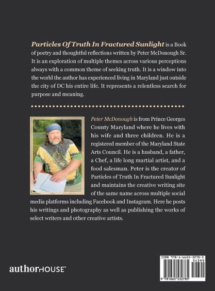 Particles Of Truth In Fractured Sunlight is a Book of poetry and thoughtful reflections written by Peter McDonough Sr. It is an exploration of multiple themes across various perceptions always with a common theme of seeking truth. It is a window into the world the author has experienced living in Maryland just outside the city of DC his entire life. It represents a relentless search for purpose and meaning.