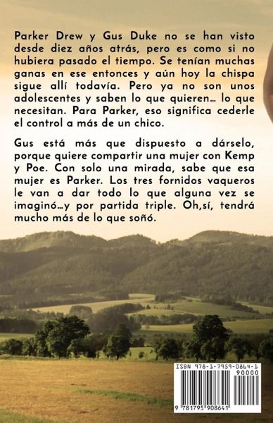 Parker Drew y Gus Duke no se han visto desde diez años atrás, pero es como si no hubiera pasado el tiempo. Se tenían muchas ganas en ese entonces y aún hoy la chispa sigue allí todavía. Pero ya no son unos adolescentes y saben lo que quieren... lo que necesitan. Para Parker, eso significa cederle el control a más de un chico. Gus está más que dispuesto a dárselo, porque quiere compartir una mujer con Kemp y Poe. Con solo una mirada, sabe que esa mujer es Parker. Los tres fornidos vaqueros le van a dar todo lo que alguna vez se imaginó...y por partida triple. Oh,sí, tendrá mucho más de lo que soñó. Recuerda: Con un libro de Vanessa Vale, un vaquero nunca es suficiente. En esta serie tan ardiente, cada heroína obtiene una porción extra (o tres) de Carne de Primera Clase.