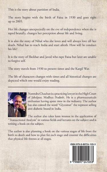 This is the story about partition of India. The story begins with the birth of Faiza in 1930 and goes right up to 2005. Her life changes unexpectedly on the eve of independence when she is raped brutally, changes her perception about life and living. It is also the story of Nihal who she loves and will always love till her death. Nihal has to reach India and start afresh. How will he conduct his life? It is the story of Shekhar and Javed who rape Faiza but later are unable to forgive self. The story travels from 1930 to present times and the Kargil War. The life of characters changes with times and all historical changes are depicted which one would enjoy reading.