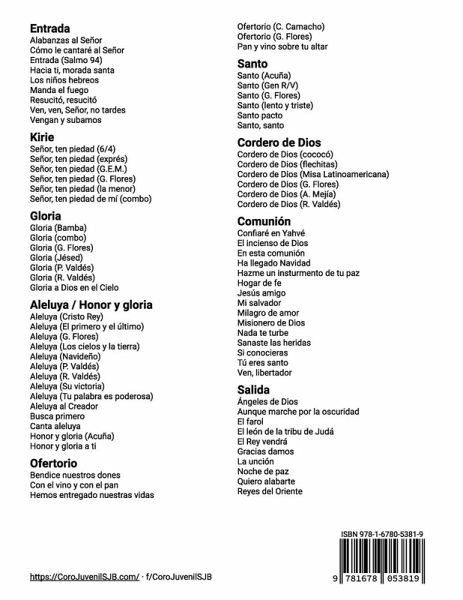 Partituras corales del Coro Juvenil San Juan Bosco, de Monterrey, México. Para soprano