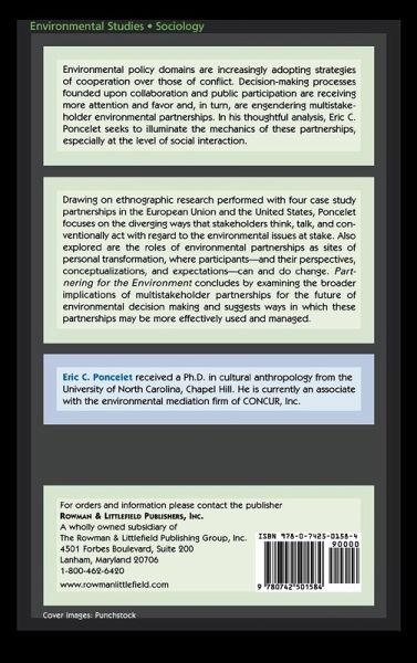 Environmental policy domains are increasingly adopting strategies of cooperation over those of conflict. Decision-making processes founded upon collaboration and public participation are receiving more attention and favor and, in turn, engendering multistakeholder environmental partnerships. In his thoughtful analysis, Eric C. Poncelet seeks to illuminate the mechanics of these partnerships, especially at the level of social interaction.