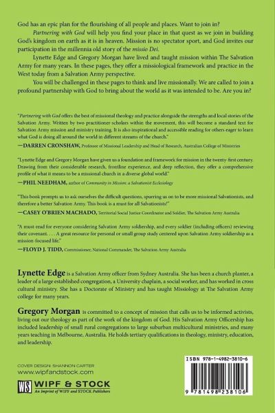 God has an epic plan for the flourishing of all people and places. Want to join in? Partnering with God will help you find your place in that quest as we join in building God's kingdom on earth as it is in heaven. Mission is no spectator sport, and God invites our participation in the millennia old story of the missio Dei. Lynette Edge and Gregory Morgan have lived and taught mission within The Salvation Army for many years. In these pages, they offer a missiological framework and practice in the West today from a Salvation Army perspective. You will be challenged in these pages to think and live missionally. We are called to join a profound partnership with God to bring about the world as it was intended to be. Are you in?